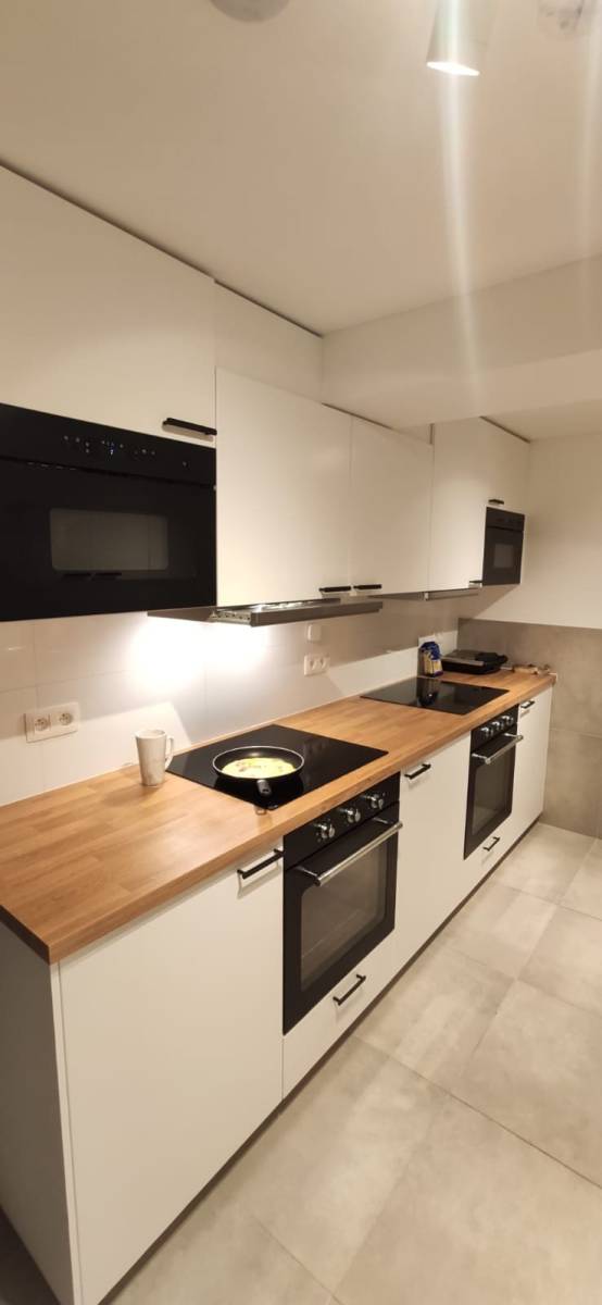 Op verdieping -1 vind je een ruime, gemeenschappelijke keuken die aansluit op een gezellige zithoek — ideaal om samen te koken of te ontspannen met medestudenten.