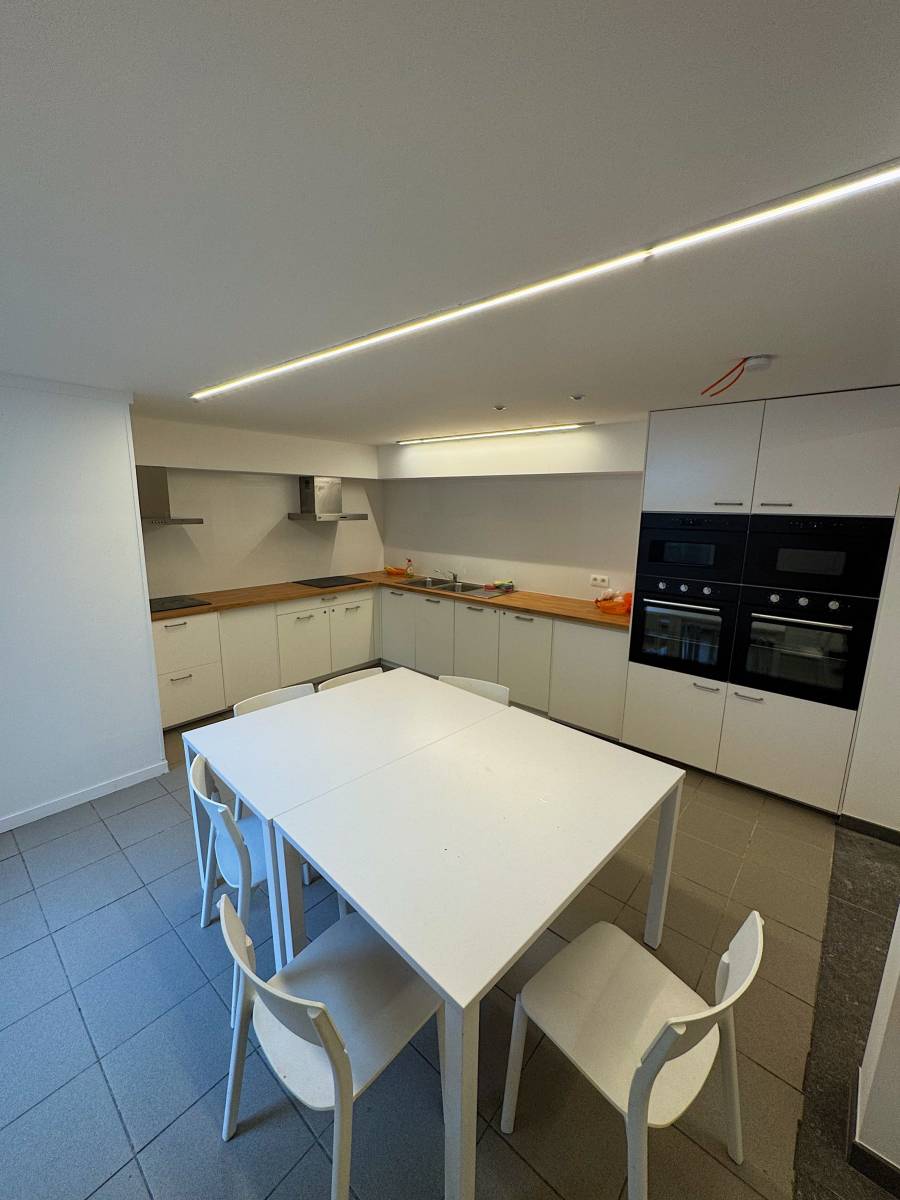 Op verdieping -1 vind je de gemeenschappelijke keuken, die aansluit op een gezellige zitruimte — ideaal om samen te koken of even te ontspannen met medestudenten.