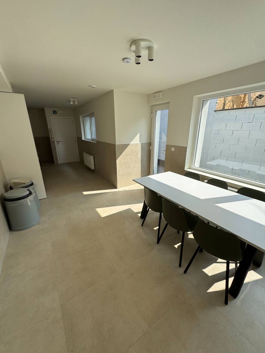 Daarnaast is er een gezellige, volledig uitgeruste gemeenschappelijke keuken met oven en kookplaat — ideaal om samen te koken en te genieten van het dagelijkse studentenleven.