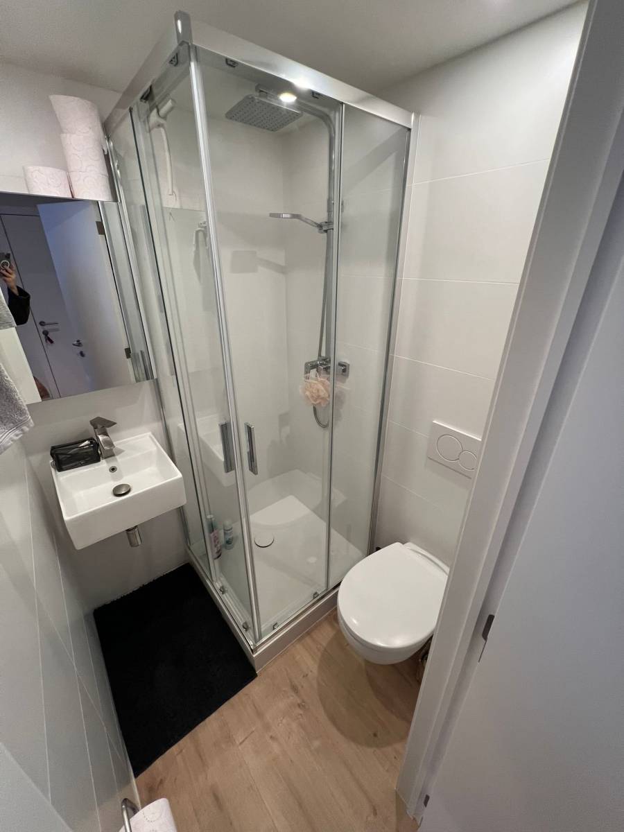 In dit gebouw vind je acht moderne studio’s van 18 m² tot 40 m², elk uitgerust met een eigen badkamer met douche, toilet en wastafel.