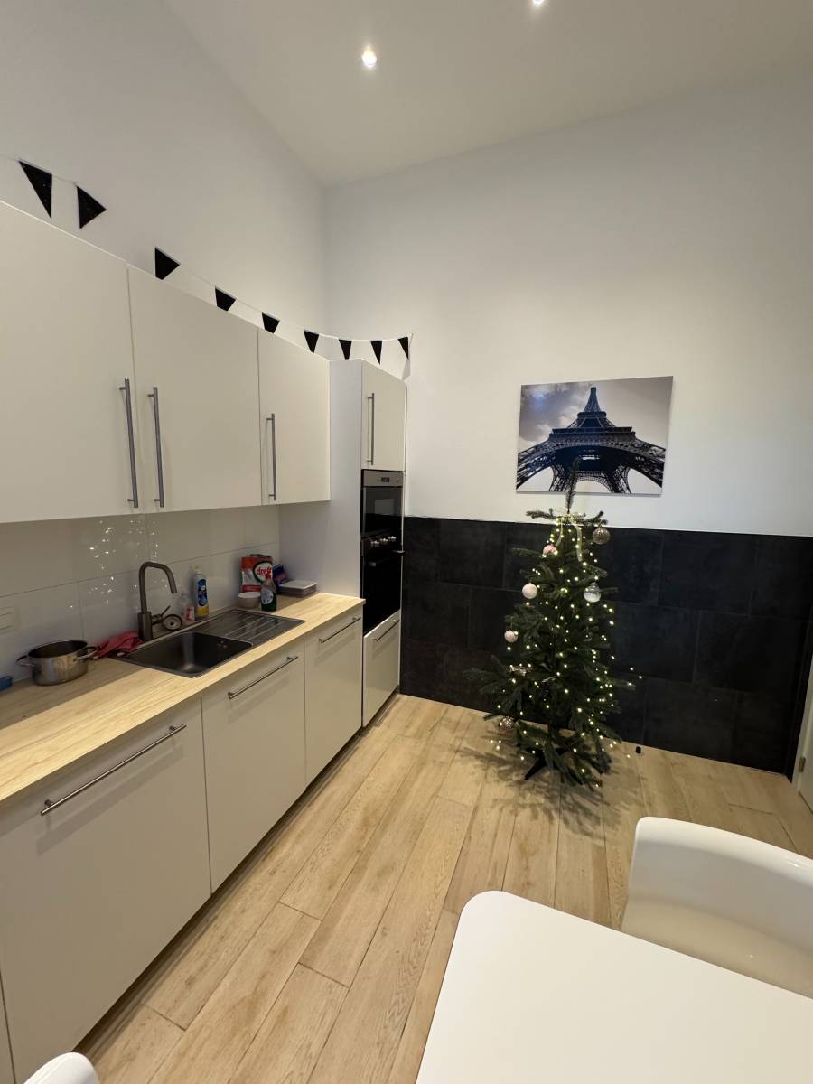 Op het gelijkvloers is er daarnaast nog een tweede, volledig uitgeruste keuken met bartafels.
