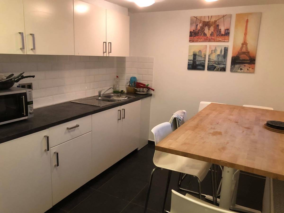 De gemeenschappelijke keuken wordt gedeeld met slechts zes andere bewoners, wat zorgt voor een rustige en huiselijke sfeer.