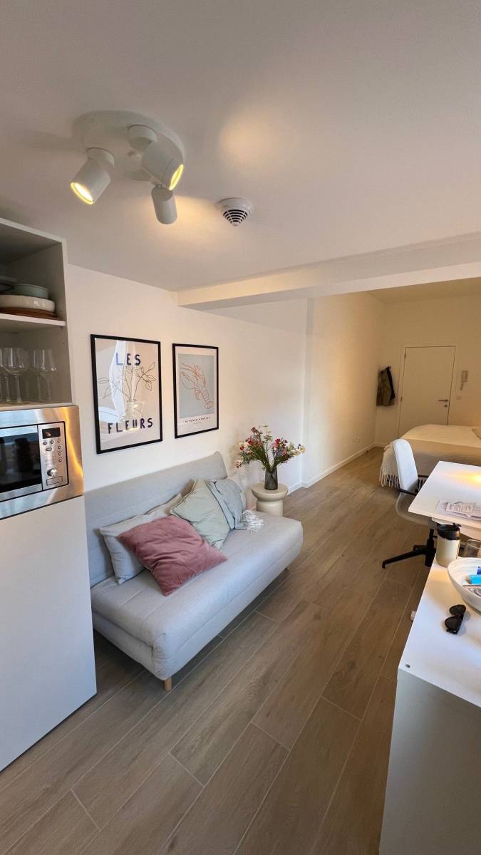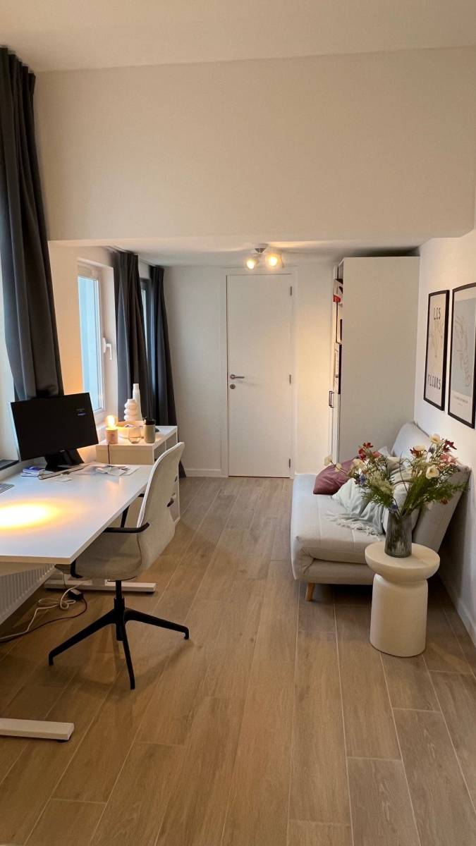 Daarnaast is er een gezellige, volledig vernieuwde keuken en leefruimte, uitgerust met moderne keukentoestellen — ideaal om comfortabel te koken, samen te eten of te ontspannen met medestudenten.