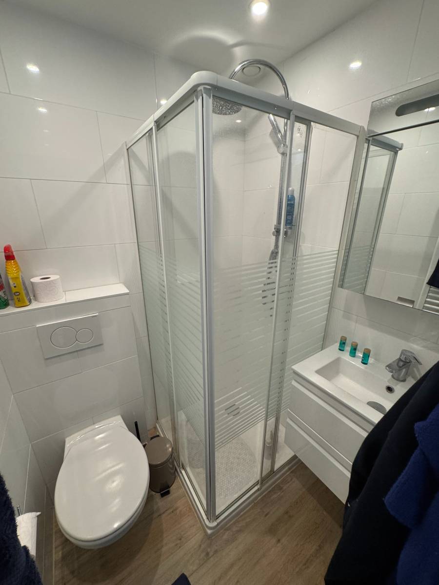 Elke kamer beschikt over een eigen badkamer met douche, toilet en wastafel.