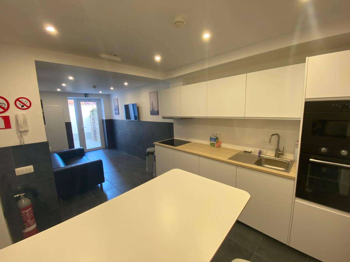 De gemeenschappelijke keuken is volledig uitgerust met een bartafel, oven, microgolf, inductiekookplaat en afwasmachine.